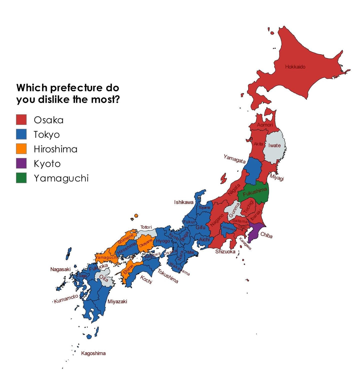 , ඒ කියන්නේ ජපානේ ප්රාන්ත අනුව ඒවගේ ජිවත් වෙන මිනිස්සු ජපානේ තමන් අකමැතිම ප්රාන්ත.